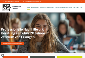 Das Nachhilfeinstitut Paukkammer Erlangen unterstützt seit mehr als 20 Jahren Schüler und Studenten mit Nachhilfe und Kursen in allen Fächern und Klassen. Wir bieten Nachhilfe, die mittel- und langfristig wirkt, für jedes Alter und jede Schulart. Jetzt kostenlosen Probeunterricht im Herzen von Erlangen buchen!